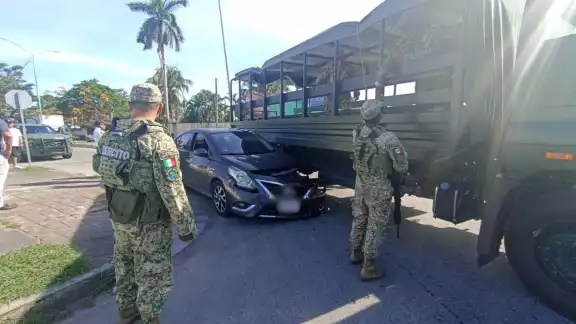 La mañana de este jueves, un vehículo de traslado de personal del Ejército Mexicano se llevó a un automóvil particular cuando intentaba realizar una maniobra para dar la vuelta en calles de Chetumal, de modo que le ocasionó diversos daños en la carrocería, mientras que el vehículo oficial no presentó desperfectos.