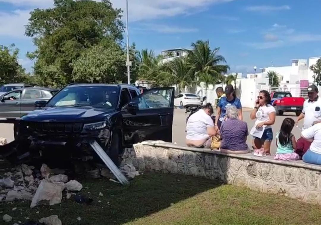 Dos personas resultaron lesionadas y se registraron daños materiales de consideración la tarde de este sábado, tras un accidente vial en una glorieta del cruce de las avenidas Solidaridad y Flor de Ciruelo, en Playa del Carmen, luego de que una camioneta ingresó sin precaución y colisionó contra una motocicleta que contaba con preferencia de paso.