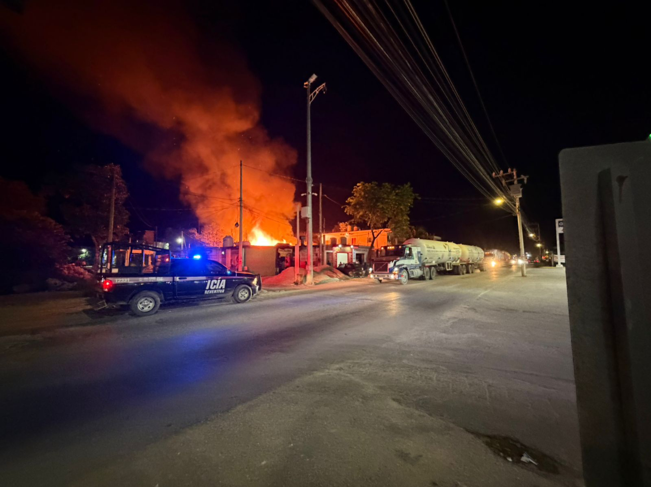 De manera solidaria, algunos ciudadanos que presenciaron el inicio del siniestro apoyaron controlando la circulación vehicular sobre la calle Okoot, por donde transitan unidades de carga pesada. Entre ellas se encontraban pipas de gas LP que estaban estacionadas cerca del lugar, representando un riesgo adicional.