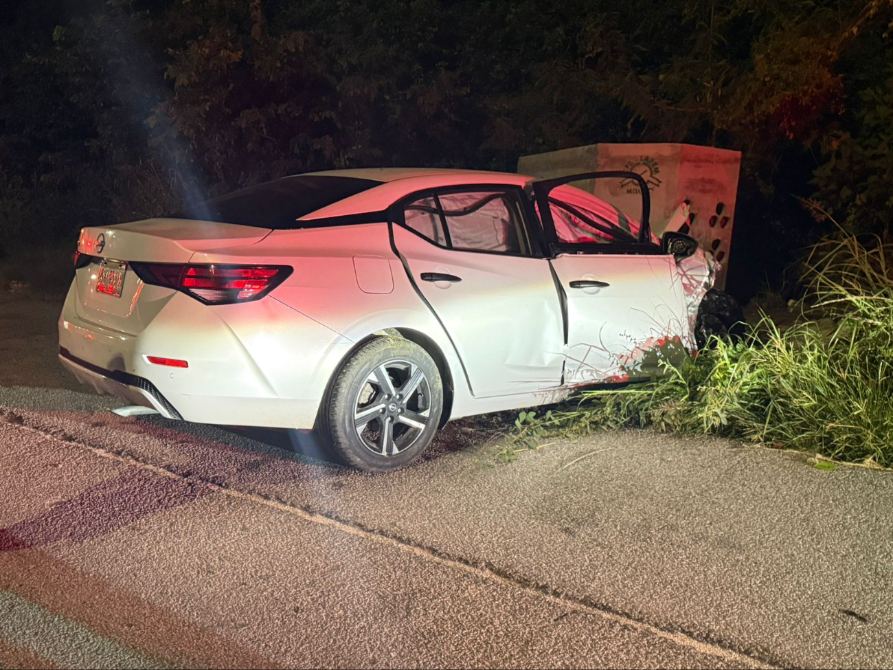 De acuerdo con información preliminar recabada en el lugar, el conductor de un vehículo Nissan Versa, color blanco, perdió el control de la unidad por causas aún no determinadas, saliéndose de la cinta asfáltica y terminando su trayectoria al impactarse de manera violenta contra una base de concreto ubicada a un costado de la vía federal. El fuerte choque dejó severos daños materiales en el automóvil.