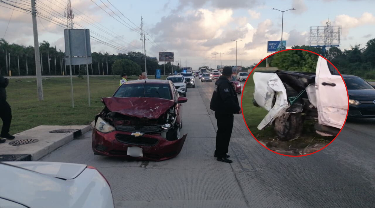 Un aparatoso accidente en el bulevar Luis Donaldo Colosio, a la altura del conjunto residencial Lagos del Sol, paralizó por algunos momentos la circulación en el sentido hacia el aeropuerto, cuando una camioneta invadió los carriles contrarios y provocó la colisión contra otros 3 vehículos.