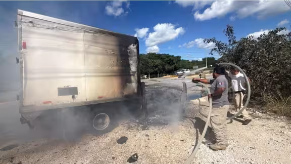 Una camioneta de carga tipo caja seca se incendió mientras circulaba sobre la carretera federal Playa del Carmen–Tulum, a la altura del complejo hotelero Bahía Príncipe, lo que generó una intensa movilización de cuerpos de emergencia y afectaciones temporales a la vialidad.