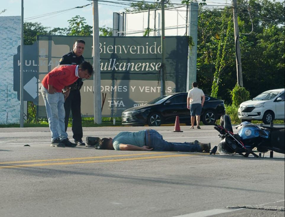 La tarde de este viernes se registró un aparatoso accidente de tránsito sobre la carretera libramiento autopista Mérida-Cancún, cuando el conductor de una camioneta presuntamente le hizo un corto de circulación a un motociclista quien salió proyectado contra el pavimento. Paramédicos le brindaron los primeros auxilios y lo trasladaron de emergencia al hospital de Especialidades del IMSS.