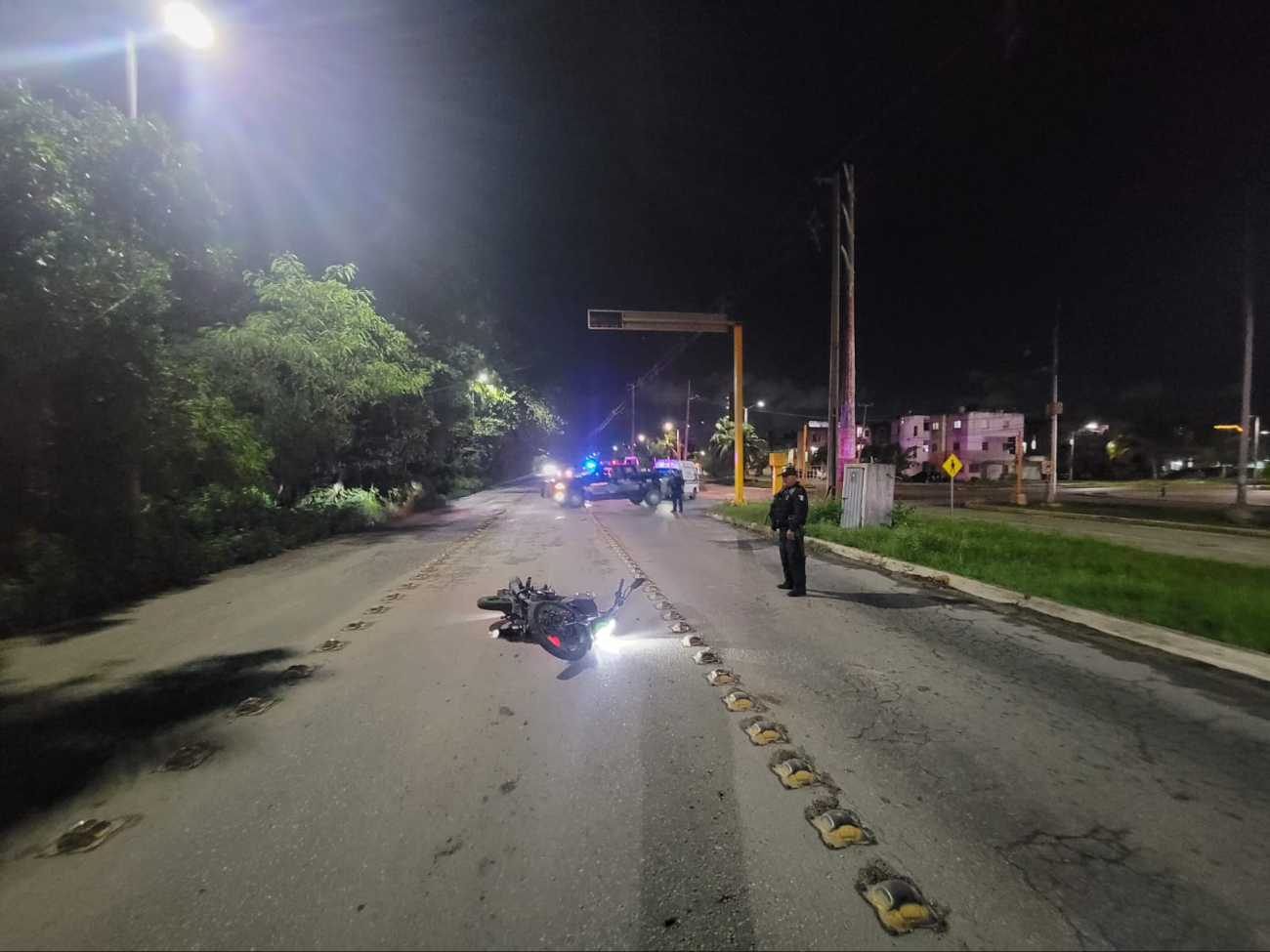 El aparatoso percance se registró en el transcurso de la madrugada, cuando el conductor de la motocicleta, marca Italika, circulaba en la avenida Bonampak en el sentido del centro de la ciudad hacia la Supermanzana 77, pero perdió el control y derrapó sobre su costado izquierdo en la cinta asfáltica.
