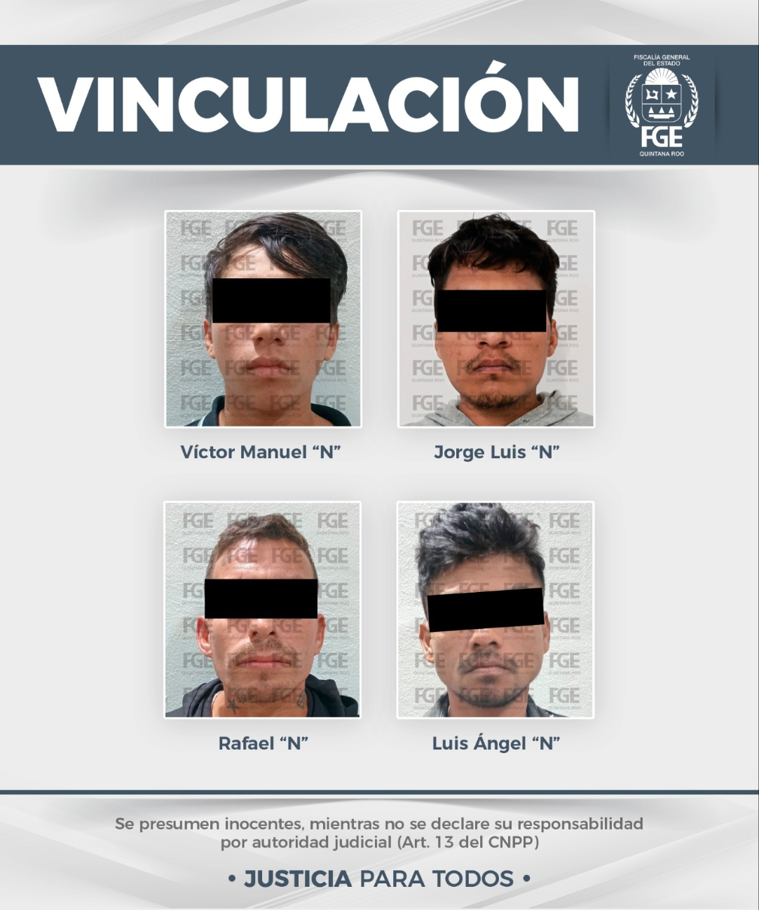 Cuatro hombres fueron vinculados a proceso por su presunta participación en el delito de extorsión agravada en Playa del Carmen, luego de que un juez de control considerara suficientes los datos de prueba presentados en su contra.