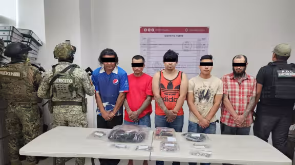 "En este lugar lograron la detención de cinco personas identificadas como Ángel “N”, quien tenía en su poder un arma corta tipo escuadra, un cargador abastecido, además de dosis de hierba verde; otros detenidos son Asael “N”, José Luis “N”, Kennedy “N” y Moisés “N”, todos ellos tenían bolsitas con hierba verde", detalló la Fiscalía en un comunicado.