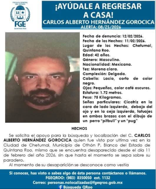 Localizan sin vida a Carlos Gorocica, reportado como desaparecido en Chetumal / Especial