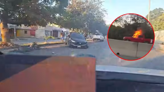 Casi al mismo tiempo, unidades de rescate se desplazaron hacia la carretera Cancún–Mérida, en la vía de cuota a la altura de Leona Vicario, donde una camioneta pickup roja comenzó a incendiarse aparentemente por una falla mecánica. Bomberos y paramédicos acudieron de forma preventiva para descartar personas lesionadas y controlar la situación; el hecho derivó únicamente en pérdidas materiales.
