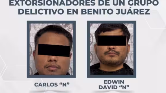 De acuerdo con las investigaciones integradas por la Fiscalía General del Estado, los detenidos fueron identificados como Carlos “N”, de 27 años, y Edwin David “N”, de 24 originarios de Quintana Roo, quienes presuntamente acudieron al establecimiento de la víctima a bordo de una motocicleta para exigir dinero al comerciante.