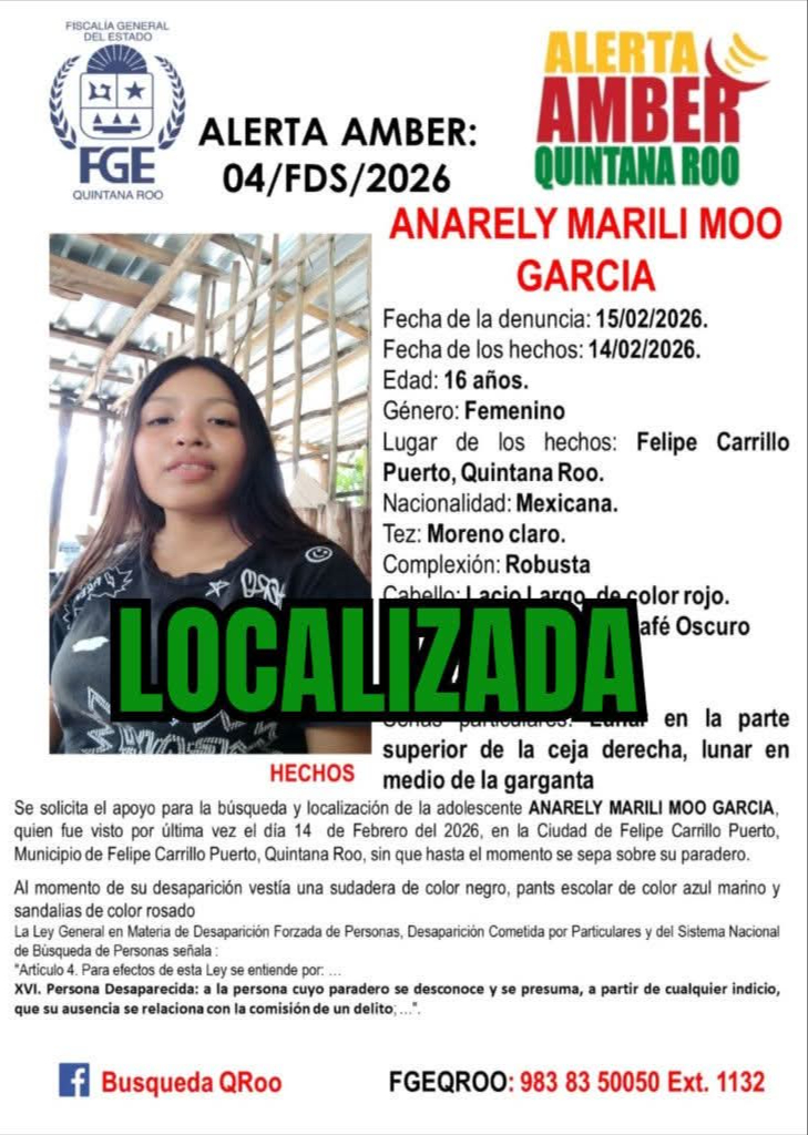 De acuerdo a información que se pudo indagar con fuentes de la Fiscalía General del Estado, se pudo conocer que en las ultimas horas fue desactivado una ficha de búsqueda en agravio de una menor, que fue identificada como Anarely M.M de 16 años de edad, y que fue vista por última vez el pasado 14 de febrero y cuya denuncia fue formalizada el 15 de este mismo mes.