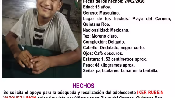 La activación de la Alerta Amber para la localización de Iker Rubein Vázquez Limón, un menor de 13 años desaparecido el 24 de febrero de 2026 en Playa del Carmen, movilizó a las autoridades estatales tras la denuncia presentada por sus familiares el mismo día de su no localización.