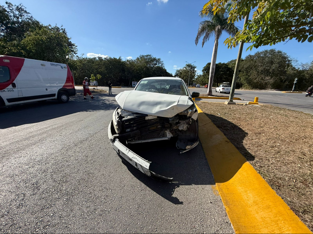 Aparatoso percance vehicular en Paseo Central y 125 en Playa del Carmen deja daños materiales