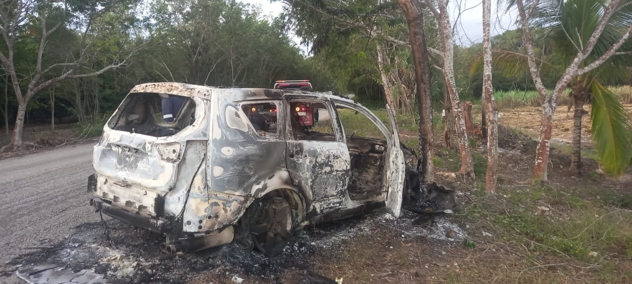 Un vehículo quedó completamente calcinado tras incendiarse en el tramo conocido como la Recta, entre los ejidos San Francisco Botes y Cocoyol, en la Ribera del Río Hondo. Afortunadamente, no se reportaron personas al interior de la unidad al momento del siniestro.