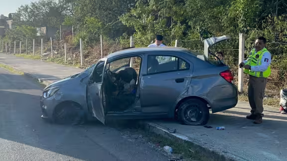 El percance ocurrió alrededor de las 08:00 horas de este día, cuando el vehículo gris circulaba en el carril izquierdo con dirección hacia el centro de la ciudad.