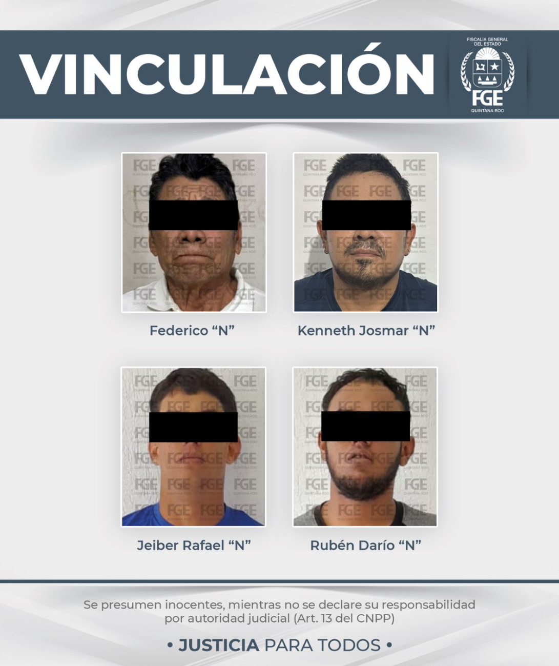 La Fiscalía afirmó que, en los dos casos, el Juez de Control determinó imponer la medida cautelar de prisión preventiva para los cuatro procesados, con un término de dos años o lo que dure el proceso judicial.