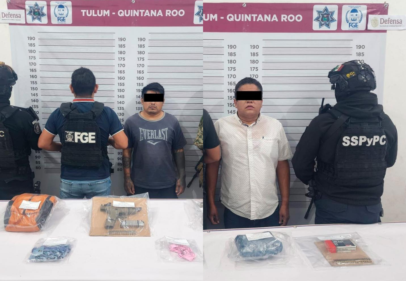 De acuerdo con información oficial, el primer aseguramiento ocurrió en el cruce de las avenidas Tulum y Cobá, donde los agentes interceptaron a Francisco Román “N”, quien se encontraba en posesión de varias dosis de hierba verde y seca con características similares a la marihuana, así como cartuchos útiles para arma de fuego.
