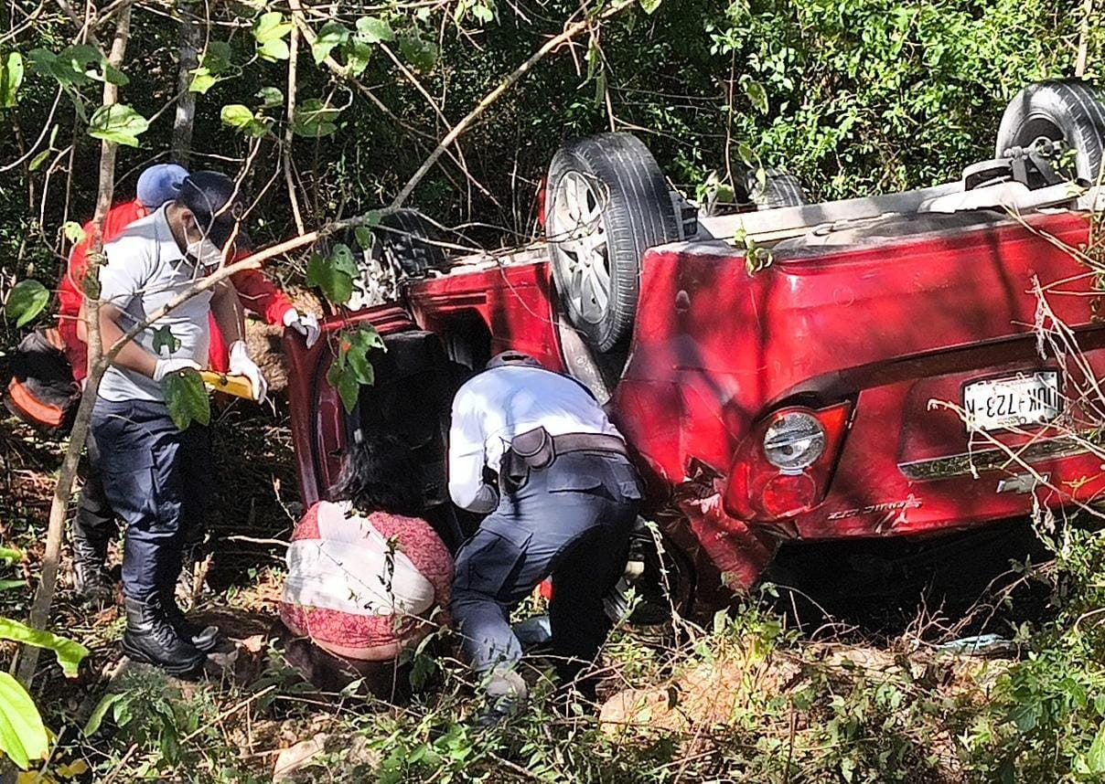 La mujer, al parecer, que viajaba de Mahahual a esta ciudad, fue sacada con vida de la unidad y trasladada de emergencia al hospital de esta ciudad, al parecer con fracturas en piernas y brazos