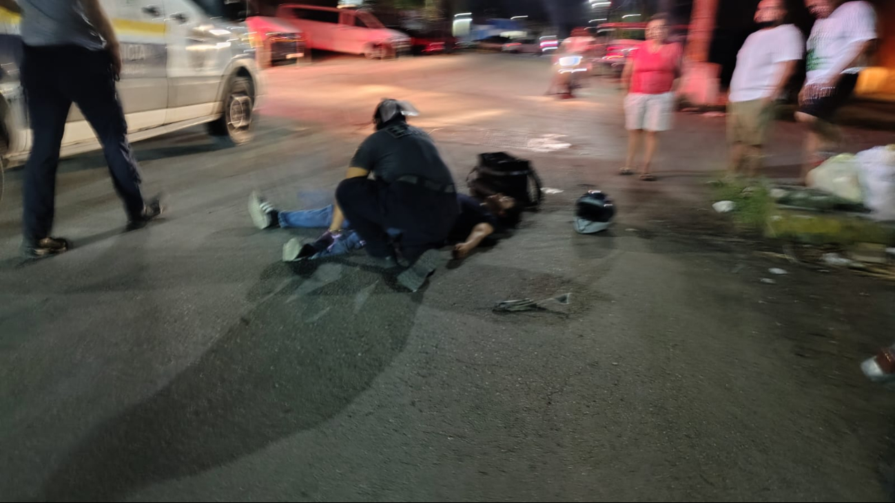 De acuerdo con los primeros reportes, el conductor de la motoneta circulaba por la zona cuando, presuntamente, omitió detenerse en el señalamiento correspondiente, impactándose de manera directa contra la otra unidad. La fuerza del choque provocó que ambos conductores perdieran el equilibrio y terminaran sobre la carpeta asfáltica, generando preocupación entre vecinos y transeúntes que presenciaron lo ocurrido.