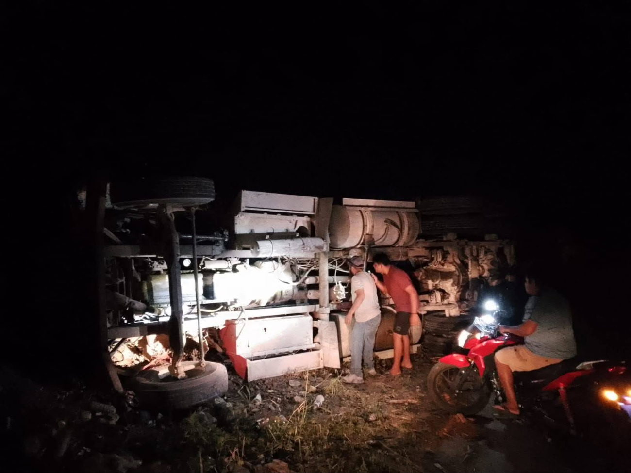 Un tractocamión que transportaba 25 toneladas de vara dulce volcó durante la madrugada en la carretera del ingenio de San Miguel de Rafael de Pucté, en la zona de la ribera del Río Hondo.