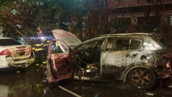 En cuestión de segundos el automóvil tipo Sportage de la marca Kia, estaba envuelto en llamas, algunos vecinos intentaron apagar el fuego a cubetazos pero era imposible, hasta que los bomberos llegaron al lugar para apagar las llamadas en su totalidad.