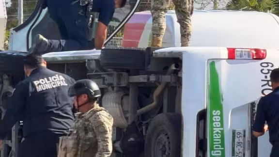 Al descender del puente de Puerto Morelos, el conductor habría perdido el control de la unidad, lo que ocasionó que invadiera el carril contrario correspondiente al sentido norte a sur, en el tramo Cancún–Puerto Morelos, para finalmente terminar volcado sobre uno de sus costados.