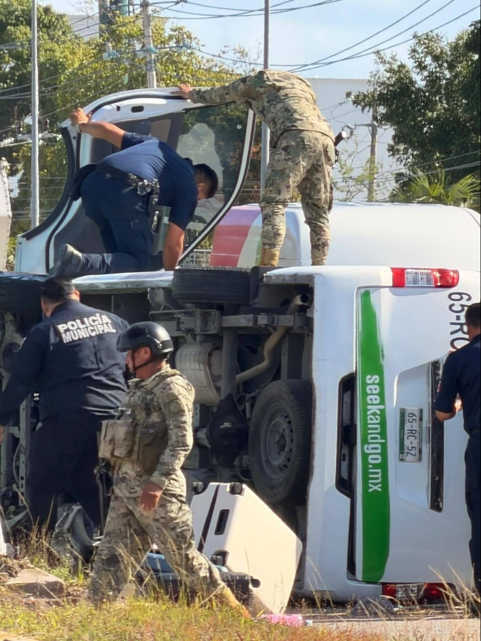 Van de transporte vuelca en la carretera 307; reportan varios lesionados