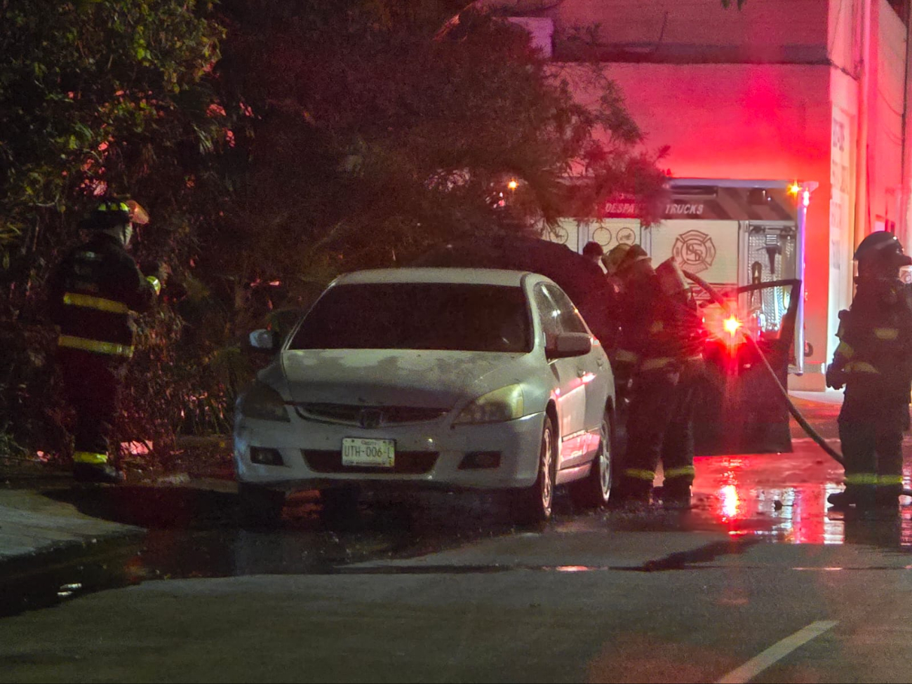 Vehículo termina en cenizas tras incendiarse en calles del Centro de Playa del Carmen