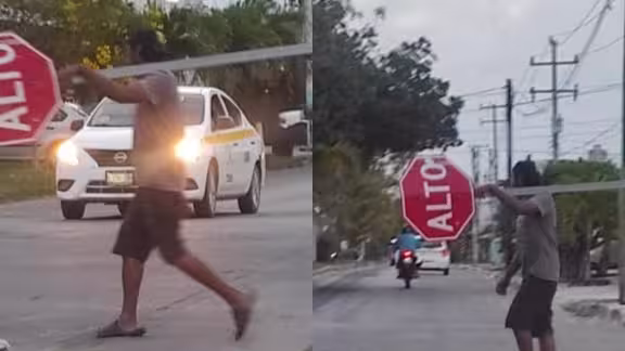 Las fotografías, difundidas posteriormente en redes sociales, muestran al sujeto caminando con la señal vial en las manos, situación que generó reacciones de inconformidad entre habitantes y conductores, quienes advirtieron sobre el riesgo que implica la ausencia de este tipo de señalamientos en una intersección.