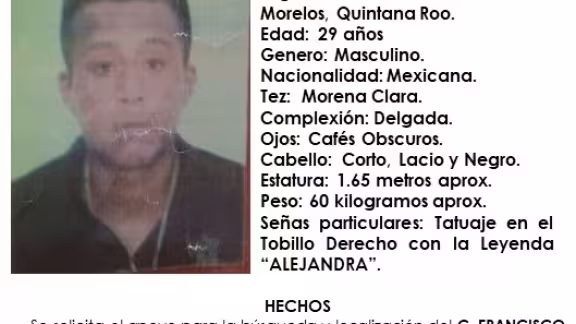 La activación de una ficha de búsqueda por la desaparición de un hombre de 29 años, visto por última vez en el municipio de Puerto Morelos, fue emitida por la Fiscalía General del Estado tras la denuncia formal presentada más de cuatro años después de su ausencia.