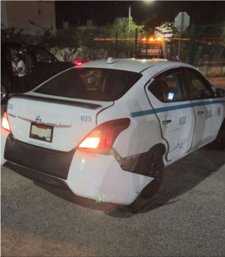 Taxi se pasa el alto y provoca choque con una combi en Playa del Carmen
