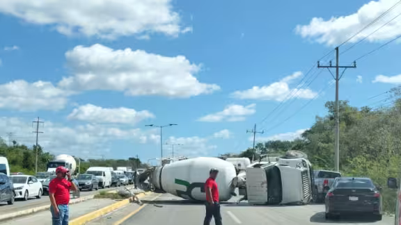 - Minutos después, antes del puente de Calica, un operador de una revolvedora perdió el control presuntamente al quedarse dormido, cruzó al carril contrario y terminó volcado, bloqueando ambos sentidos de la vía. Aunque el conductor resultó ileso, el accidente agravó el congestionamiento vehicular.