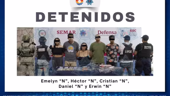 Una de las intervenciones fue realizada en la Supermanzana 110, en el fraccionamiento Paseo Kusamil, en donde los policías detuvieron a tres hombres y dos mujeres por su presunta participación en delitos contra la salud, en la modalidad de narcomenudeo.