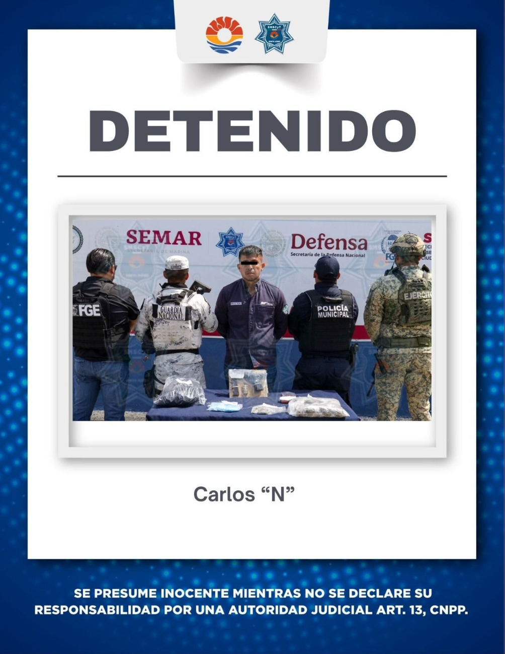 Tras su detención, el sujeto fue presentado por las autoridades. / Foto: SMSCyT
