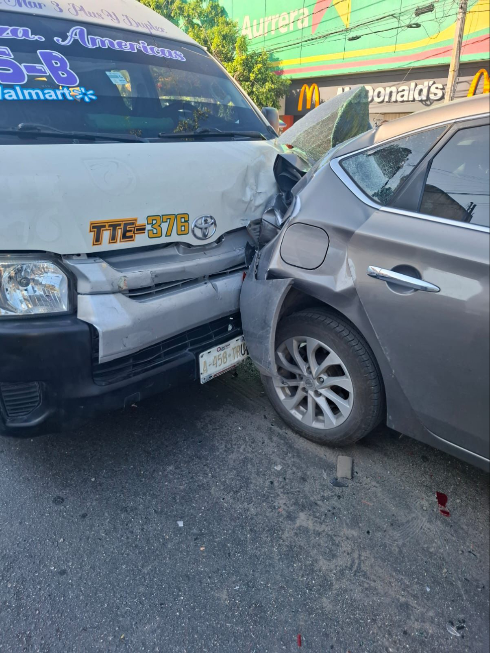 Los hechos ocurrieron frente a la multiplaza de Bodega Aurrerá, cuando Roger de 49 años, chofer de la unidad TTE376 de la ruta 15B, circulaba sobre la Kabah de la Talleres hacia Leona Vicario, fue en ese momento cuando no logró frenar mientras los demás conductores detuvieron su marcha.