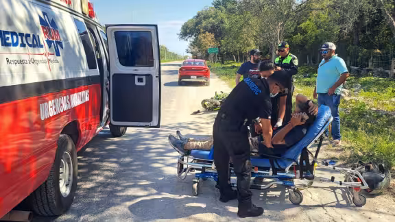 Fuerte accidente en la carretera Tulum–Cobá deja un motociclista gravemente lesionado