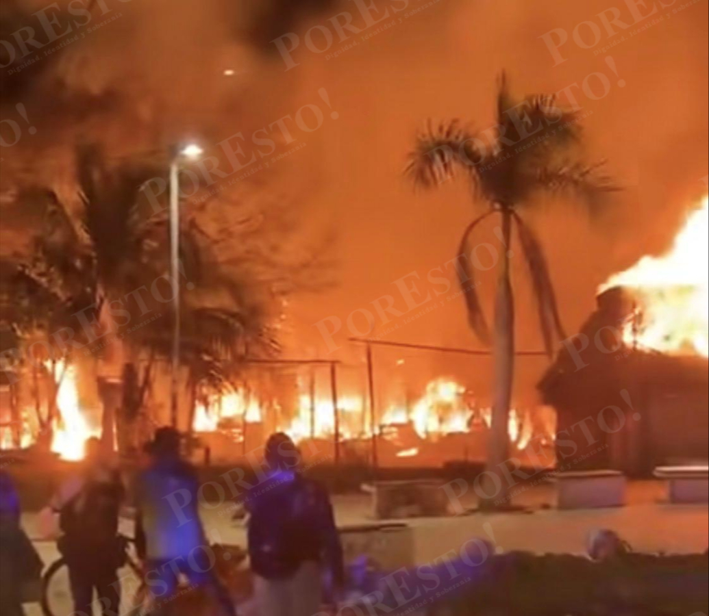 Los hechos ocurrieron sobre la avenida Luis Donaldo Colosio con Quinta Avenida, se desconocen las causas que originaron el voraz incendio que de inmediato consumió las palapas.
