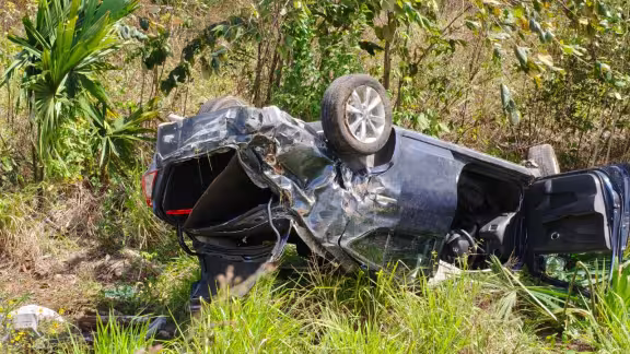 El vehículo accidentado terminó entre la maleza totalmente destrozado.
