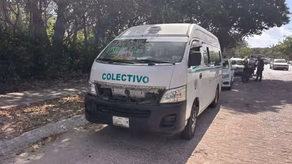 El accidente ocurrió en el cruce de la avenida 125, donde la combi de transporte público con número económico 239 colisionó con un vehículo particular. La situación generó preocupación entre automovilistas y transeúntes, quienes alertaron a las autoridades al observar que la puerta de la unidad de pasajeros había quedado atorada tras el impacto.