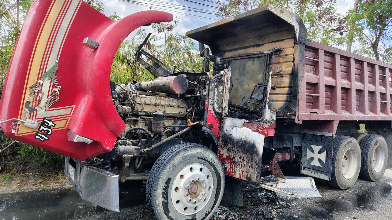 Conductor sufre quemaduras tras incendiarse su camión en la avenida Niños Héroes de Cancún
