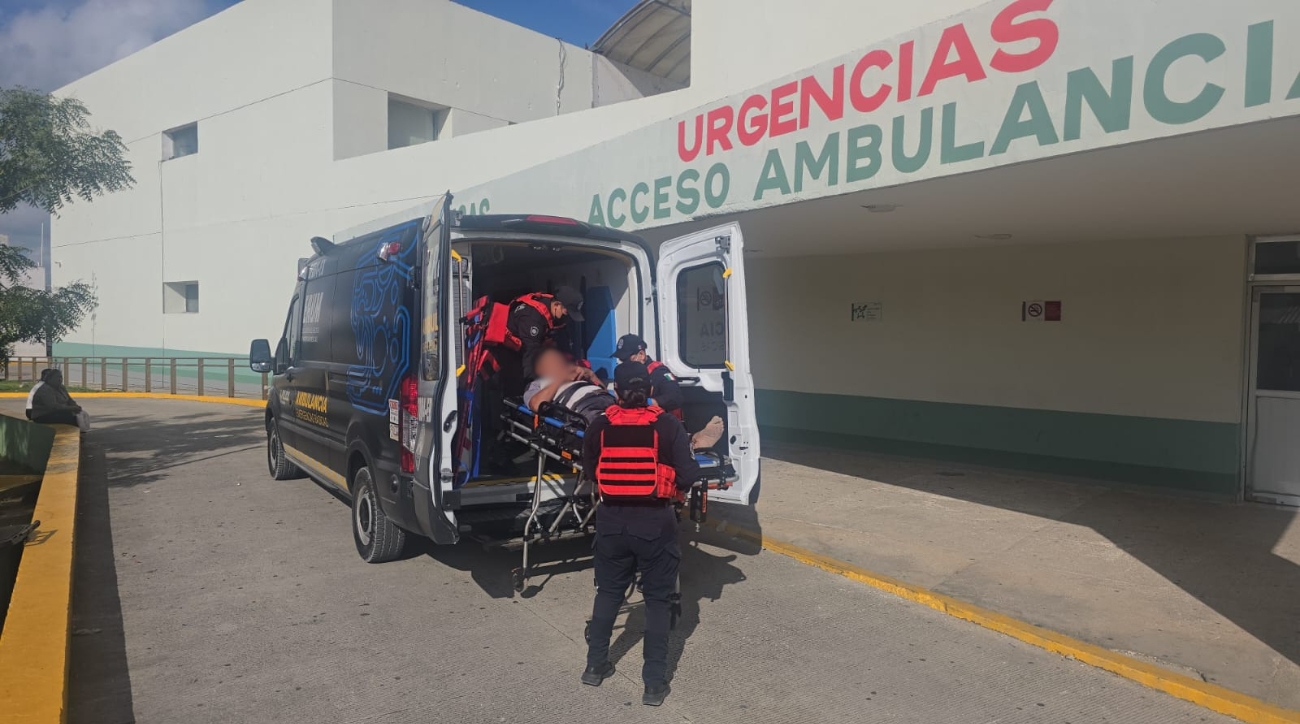 Paramédicos rápidamente le brindaron la atención prehospitalaria y trasladaron a las instalaciones de el hospital general de la ciudad de Playa del Carmen ha lesionado.
