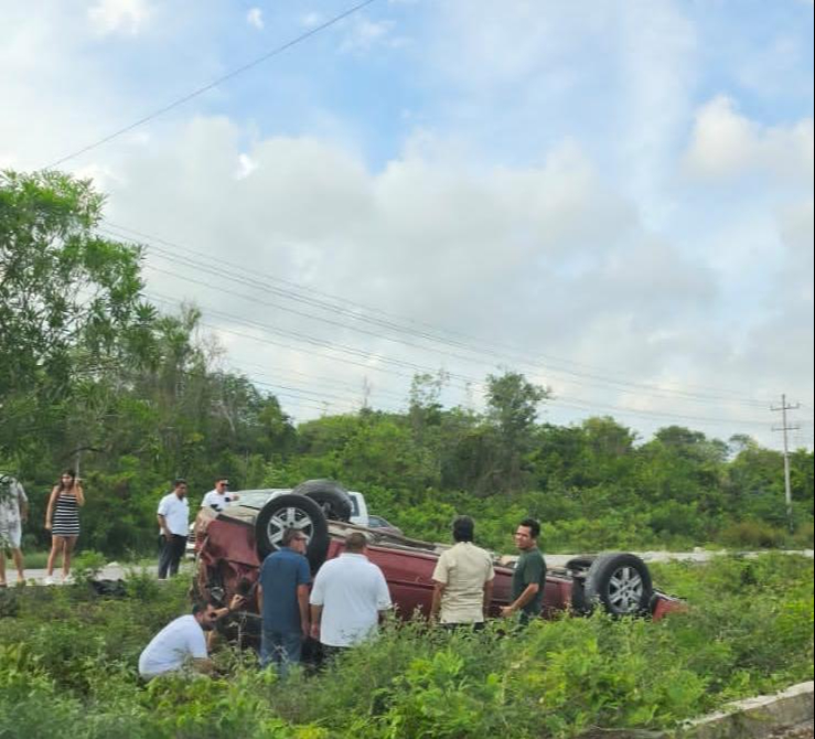 Una camioneta particular marca Nissan, color rojo, protagonizó una aparente volcadura la tarde de este domingo sobre la carretera federal 307, en el tramo Playa del Carmen–Cancún, lo que generó la movilización de cuerpos de emergencia y autoridades.