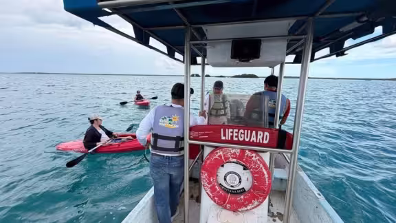 Una oportuna intervención por parte de las fuerzas de seguridad y rescate evitó que un paseo recreativo se convirtiera en una tragedia, esto en la Laguna de los Siete Colores en Bacalar.