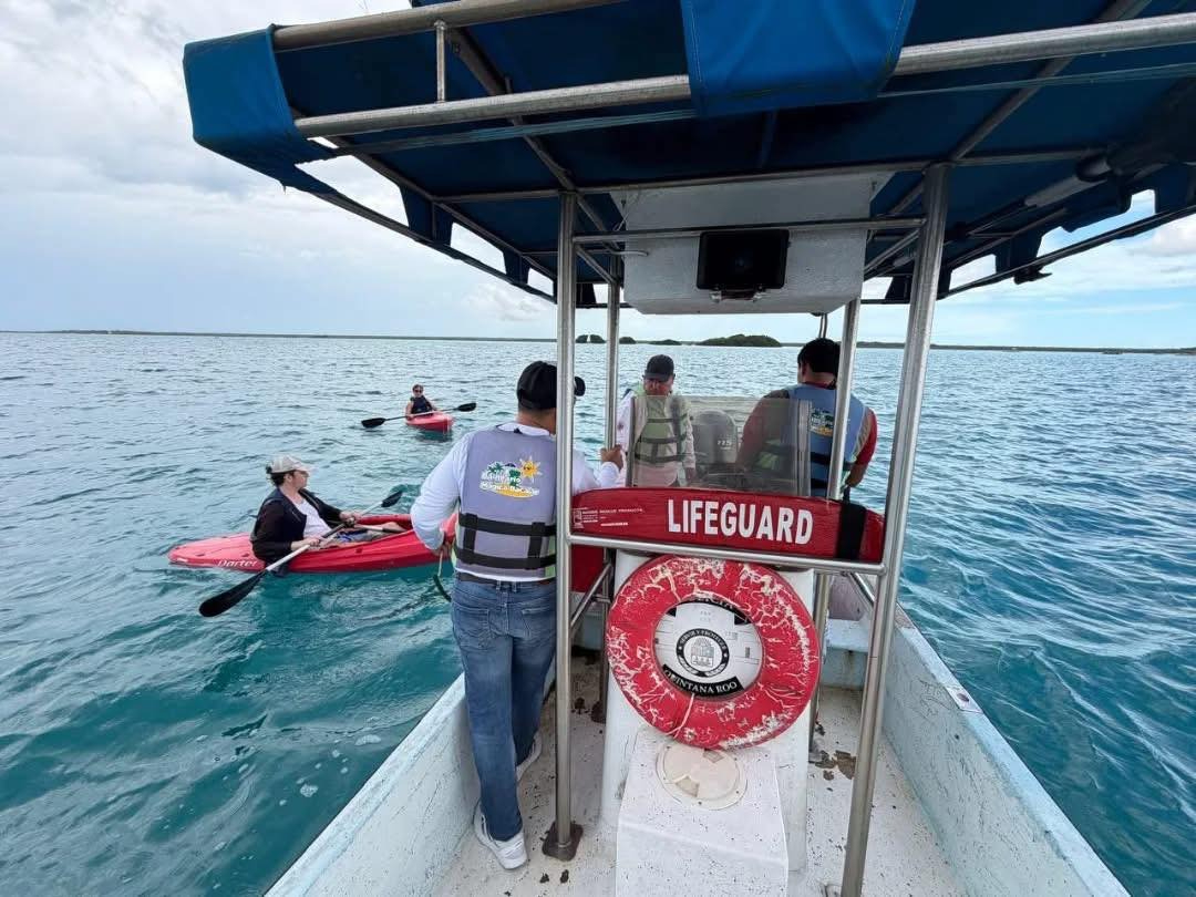 Una oportuna intervención por parte de las fuerzas de seguridad y rescate evitó que un paseo recreativo se convirtiera en una tragedia, esto en la Laguna de los Siete Colores en Bacalar.