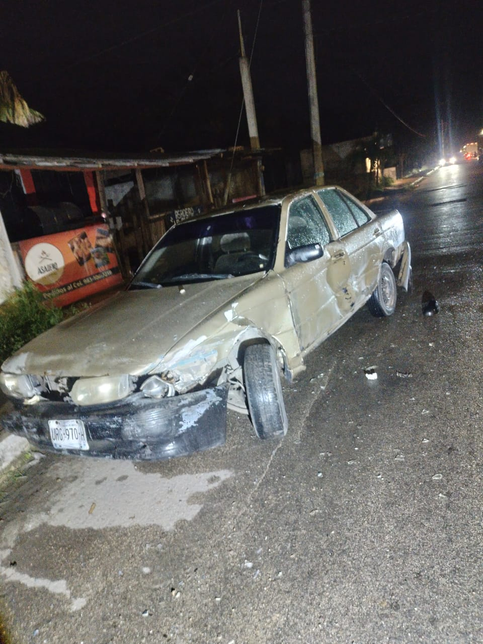 El segundo vehículo se encontraba estadio de norte a sur sobre la calle 50 mismo que se trata de la marca Nissan, color dorado, tipo Tsuru, con placas de circulación URG-970-H de Quintana Roo a cargo de Víctor P. de 43 años de edad.