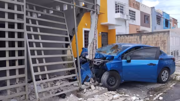 Los hechos ocurrieron alrededor de las 17:30 horas, sobre la calle Puerto de Veracruz con avenida Andalucía, en la Supermanzana 525. De acuerdo con los primeros reportes, el conductor de un vehículo Nissan Versa, color azul, circulaba presuntamente a exceso de velocidad. Al realizar una maniobra perdió el control de la unidad y se impactó contra el muro de un domicilio, derribando parte de la estructura y la reja.