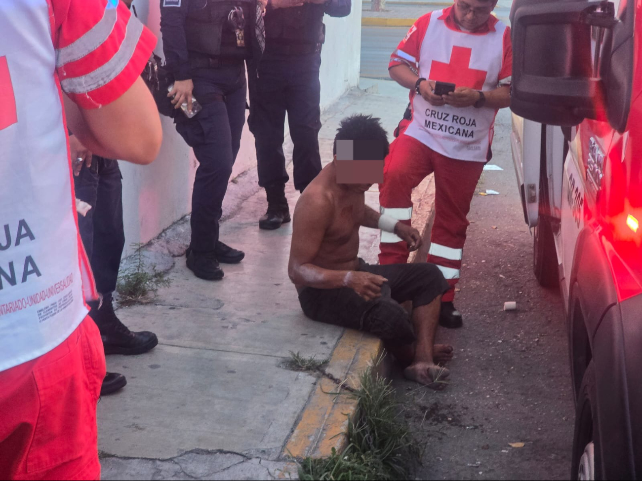 Violento episodio alteró la tranquilidad de los transeúntes en la colonia Gonzalo Guerrero, cuando un individuo en situación de calle intentó asaltar con un arma blanca a un ciudadano.