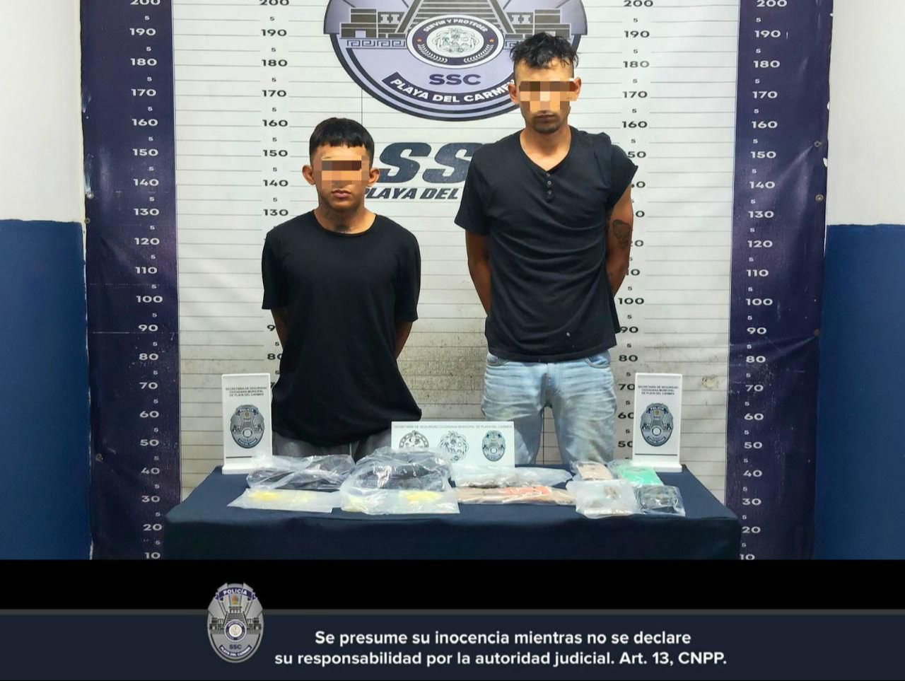 Dos sujetos fueron detenidos por elementos de la Secretaría de Seguridad Ciudadana de Playa del Carmen, por delitos contra la salud, durante un recorrido de vigilancia en el fraccionamiento El Petén.