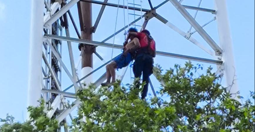 Vecinos reportaron alrededor de las 4:30 de la tarde que el sujeto se encontraba balanceándose a media torre, cuya altura supera los 30 metros.
