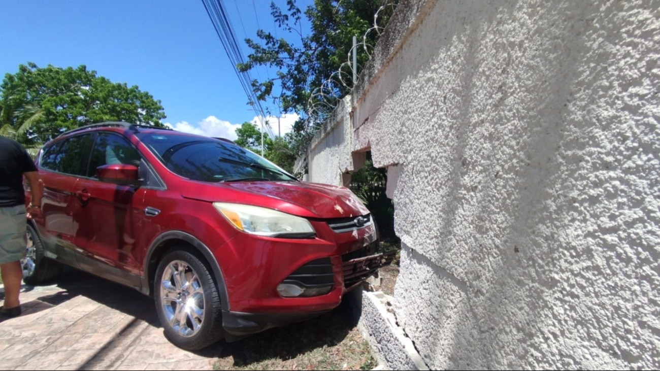 Al incorporarse de manera violenta a la vía, el automovilista perdió el control de la unidad, cruzó la banqueta y arrolló a un motociclista que circulaba por la zona, para finalmente detener su marcha tras colisionar de frente contra la barda perimetral de la base naval.