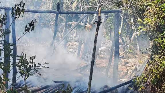 Los vecinos indicaron que la palapa fue quemada, aparentemente, de manera intencional, ya que señalaron que momentos antes del incendio vieron a unos jóvenes dentro de la propiedad.